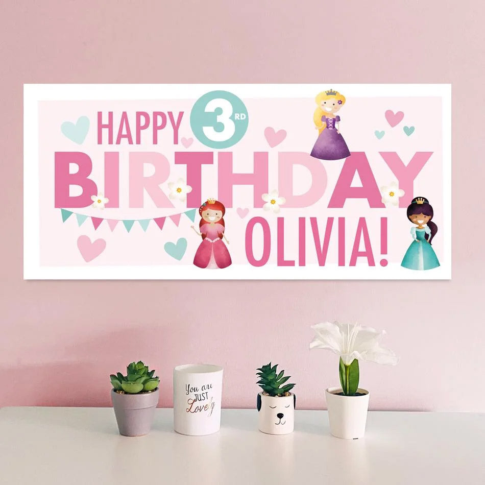 Elevate your celebration with our enchanting princess-themed birthday banner, personalised with your child’s name and age. A magical addition for little royals!