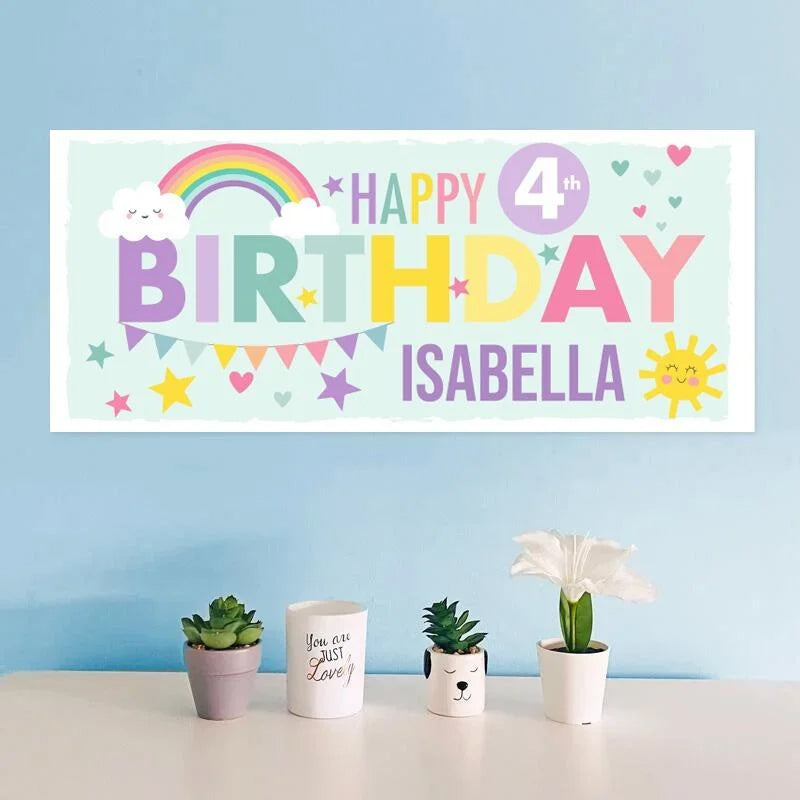 Celebrate in colour with our best-selling rainbow-themed birthday banner! Available in three vibrant styles and personalised with your child’s name and age, it’s perfect for kids of all ages.